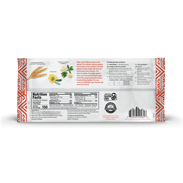 Wait, what? Wheat without the gluten? Our dinner rolls are golden and crispy on the outside, soft and pillowy on the inside with olive oil, herbs and a hint of garlic. Yet they’re totally, incredibly gluten free. How’d we pull off that magic trick? By using a special European wheat without gluten. So now everyone will fight over the last roll. Sorry/not sorry.